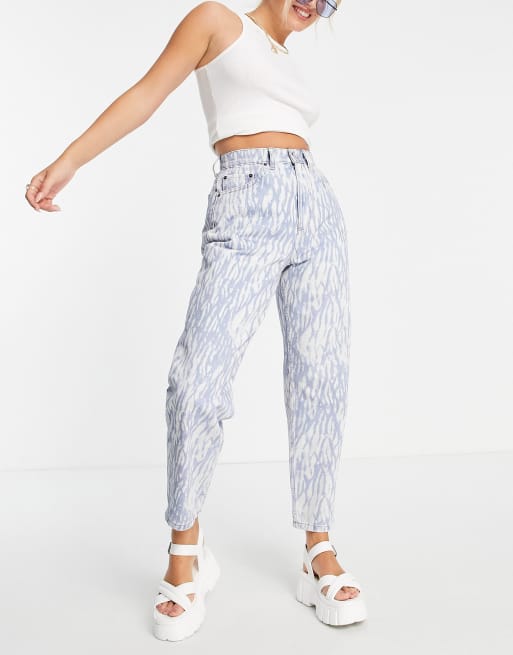 Topshop Womens Mom Jeans Bleach Tie Dye Mom Tapered Jeans Bleach Denim Votegallo